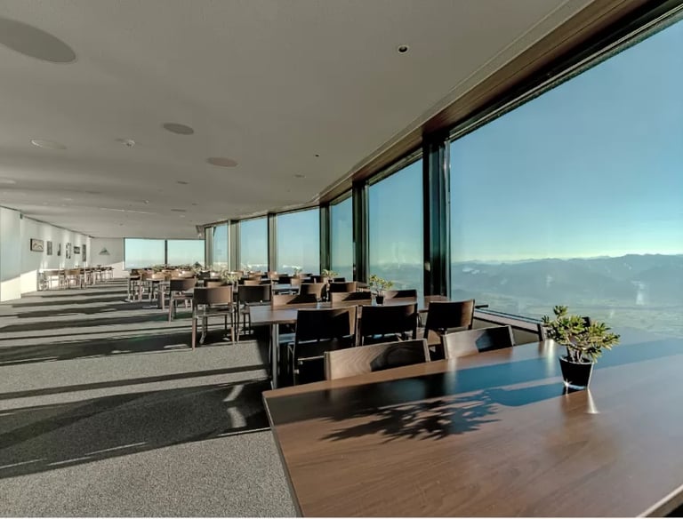 Hoch über dem Tal wird das gemeinsame Mittagessen im Drehrestaurant auf dem Hohen Kasten zum besonderen Erlebnis. Während sich der Blick langsam über die Landschaft bewegt, entsteht Raum für Gespräche, Genuss und das bewusste Innehalten. Ein Ort, der Weite schafft – außen wie innen.